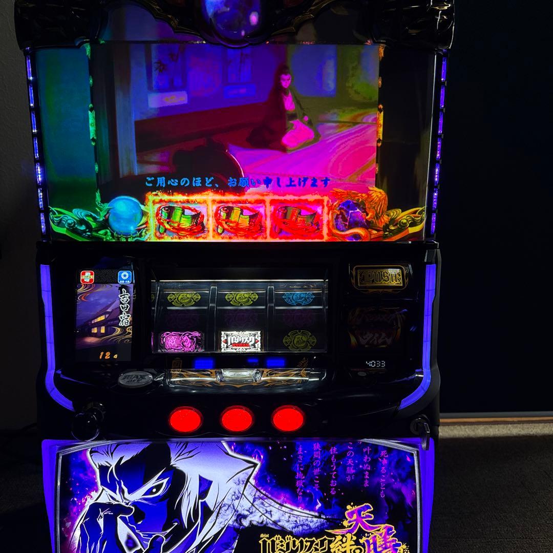 ご覧いただきありがとうございます。\r全員集合パネルのカバネリになります。\rこちら金メッキの何処かしらに剥げがあります。\r中古品で購入した為、傷や汚れなどあります。\r証紙や細かい部分や美品など(所例えばホッパーやセレクターアウトタンク等)こだわる方は販売店様の方をおすすめします。\r〈実機の内容〉\r不要機が付いております。\r鍵はドアキー 設定キーどちらもあります。\r無段階ボリュームが付いております。\r電源は家庭用電源となっております。\r発送について \rたのメル便にて発送のみとなります。\r引き渡しや他の発送はお取り扱いしておりません。種類···パチスロ,レビュー